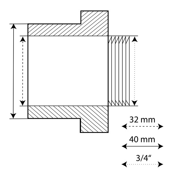 PVC-U Gewindenippel aussen 32/40 X 3/4 Zoll