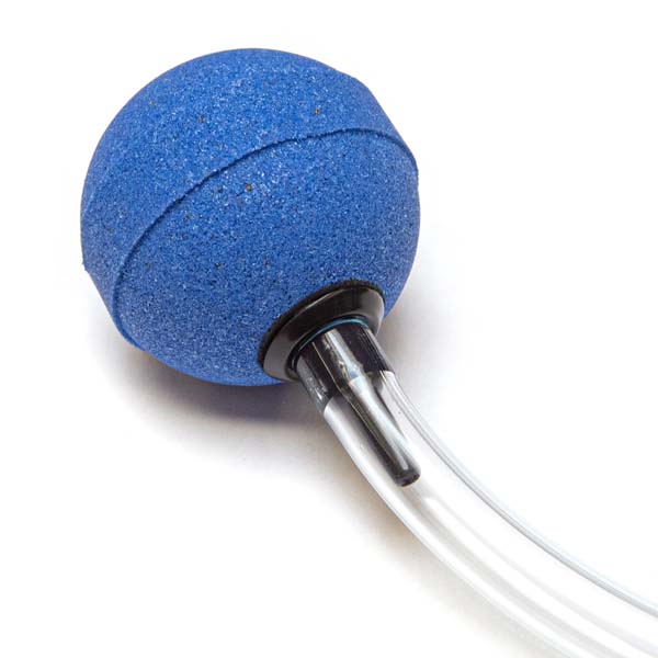 Die blauen Ausströmerkugeln aus porösem Material sorgen für eine optimale Lufteinbringung im Teich.