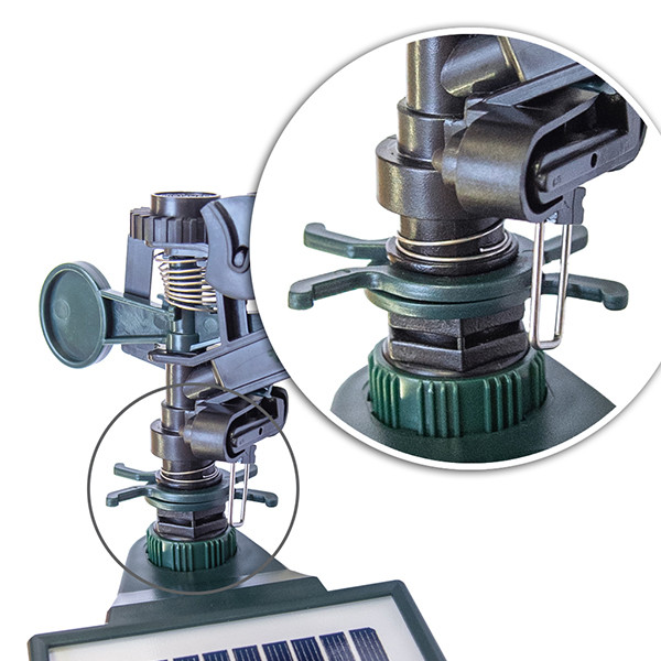 Schützt vor ungebetenen Tieren am Teich und im Garten Hält Fischreiher, Hunde, Katzen, Nager sowie weitere ungebetene Gäste aus Ihrem Garten fern. Der Wasserstrahl vertreibt unerwünschte Besucher. Mit seinem variablen Sprühwinkel bis zu 120° deckt er insgesamt eine Fläche bis ca. 100 m² ab. Der Sensor erkennt Eindringlinge selbst bei schlechten Lichtverhältnissen und sogar bei Nacht. Der «Kobre®Tec Wasserstrahl Tierschreck» hat eine einstellbare Sprühdistanz bis 10 Meter. Die Stromversorgung erfolgt über die Solarzelle und 2 Akkus Typ AA. Die Akkus sind im Lieferumfang bereits enthalten.