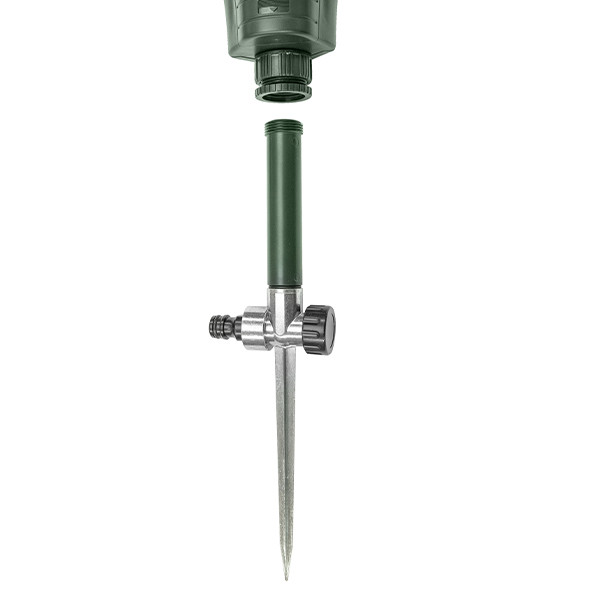 Kombinieren von mehreren Kobre®Tec Wasserstrahl-Tierschreck An grösseren Teichen ist es empfehlenswert, mehrere Kobre®Tec Wasserstrahl-Tierschreck zu installieren. Diese können ganz einfach untereinander gekoppelt werden. Dadurch wird nur ein Wasserschlauch als Zuleitung benötigt. Für das Verbinden wird ein Zubehörteil benötigt. Dieses finden Sie in der Lasche «Zubehör».
