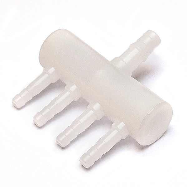 Preiswerter Luftverteiler für den Anschluss von vier Ausströmerkugeln.