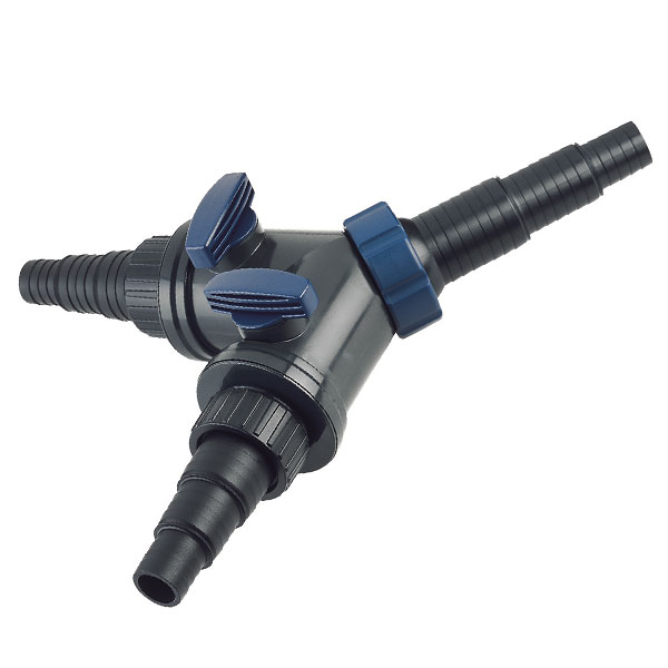 Wasserverteiler mit 1 Eingang und 2 Ausgängen.