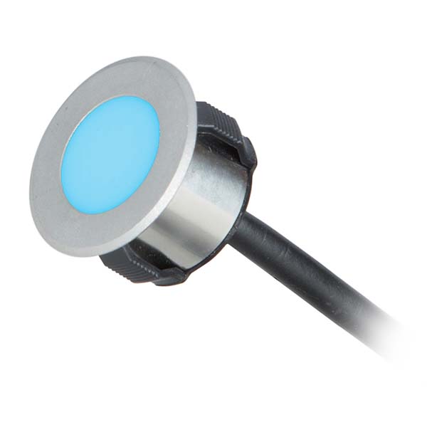 LED-Einbaustrahler für Terrassen und Gärten. Mit einem Durchmesser von nur 34 mm und einem eingebauten 0.2 Watt Leuchtmittel ist dieser Strahler auch für kleinste Platzverhältnisse geeignet. In fünf verschiedenen Farben erhältlich.
