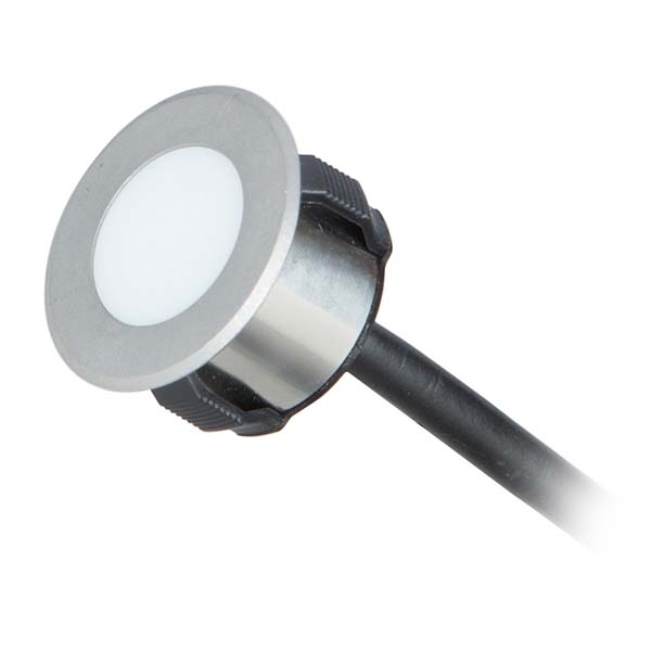 LED-Einbaustrahler für Terrassen und Gärten. Mit einem Durchmesser von nur 34 mm und einem eingebauten 0.2 Watt Leuchtmittel ist dieser Strahler auch für kleinste Platzverhältnisse geeignet. In fünf verschiedenen Farben erhältlich.