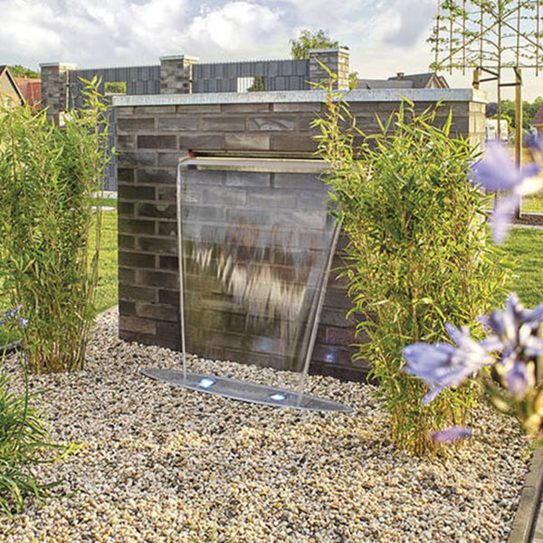 Die halbrunden Wasserreservoire mit integrierter Schmutzabscheidung eignen sich als ideale Basis für Wasserfälle. Die Rillenstruktur sorgt für einfache Kabelführung. Die Geometrie der Elemente sorgt für eine maximale Stabilität.