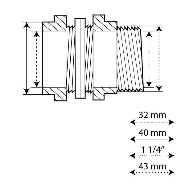PVC-U Tankdurchführung 32/40mm X 1 1/4 Zoll
