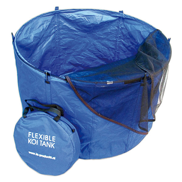 Koi-Wanne Flex Die Vorteile der neuen Koi-Wanne flex liegen auf der Hand. Sie lassen sich platzsparend in der zugehörigen Tragetasche verstauen und sind bei Bedarf mit wenigen Handgriffen einsatzbereit. Das eingenähte, mittel eines Reissverschlusses zu öffnende Abdecknetz garantiert Ihren Fischen höchste Sicherheit. Der ideale Helfer beim Umsetzen, Behandeln oder Fotografieren Ihrer Koi.